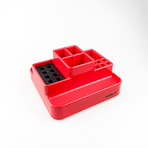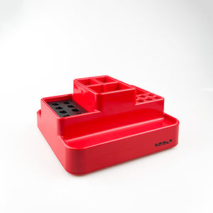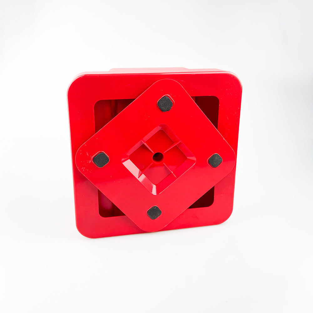 Plástico rojo con base giratoria.