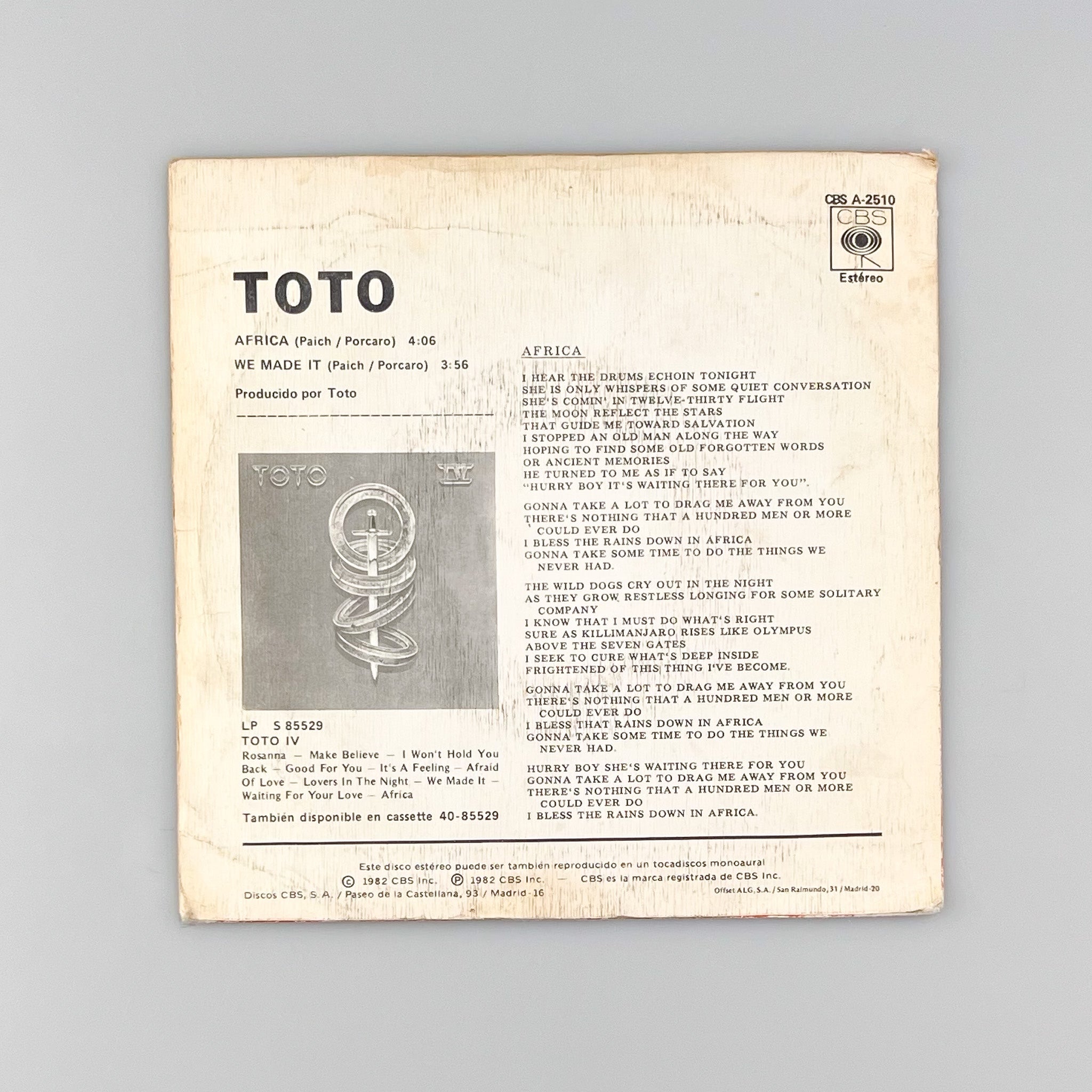 SINGLE. Toto. Africa