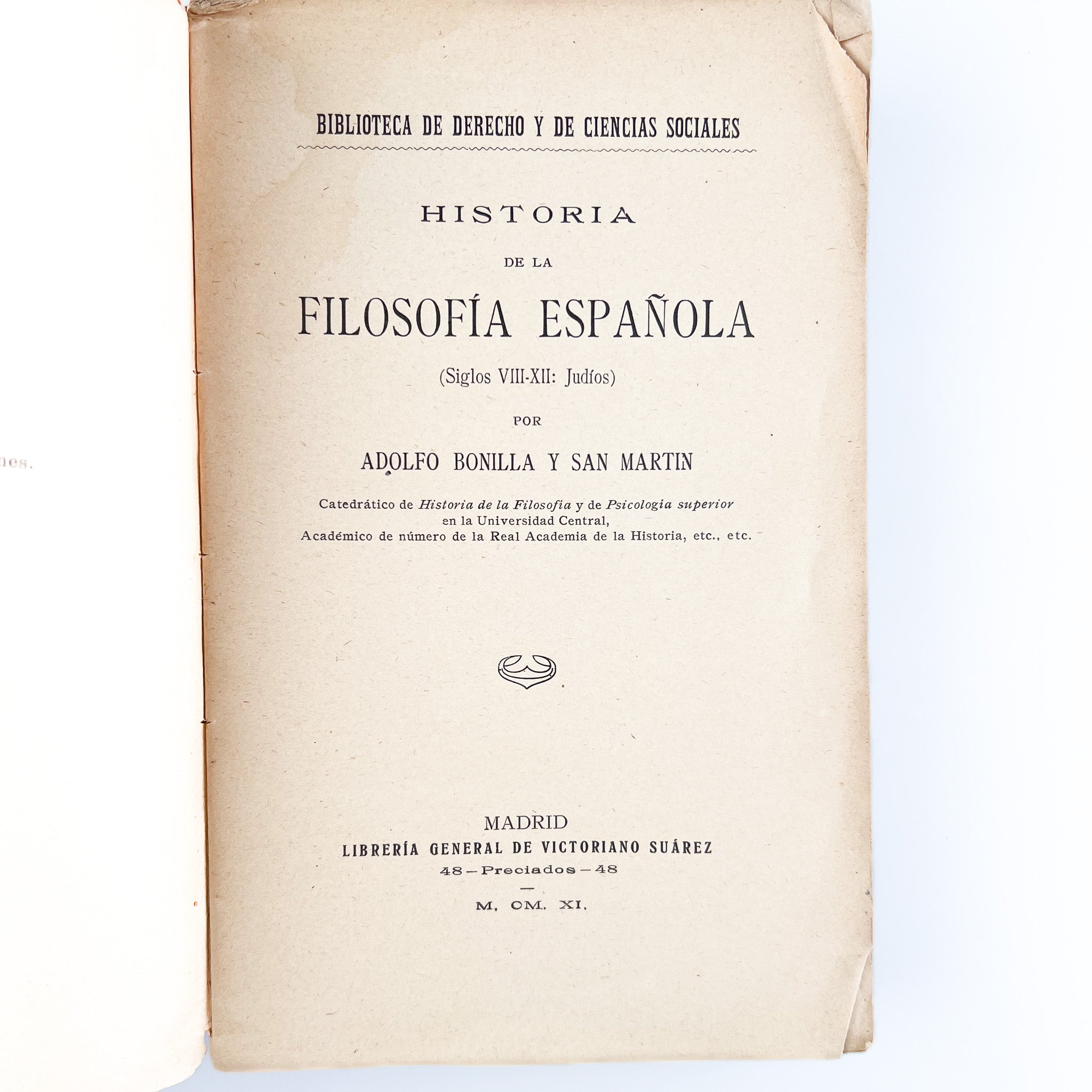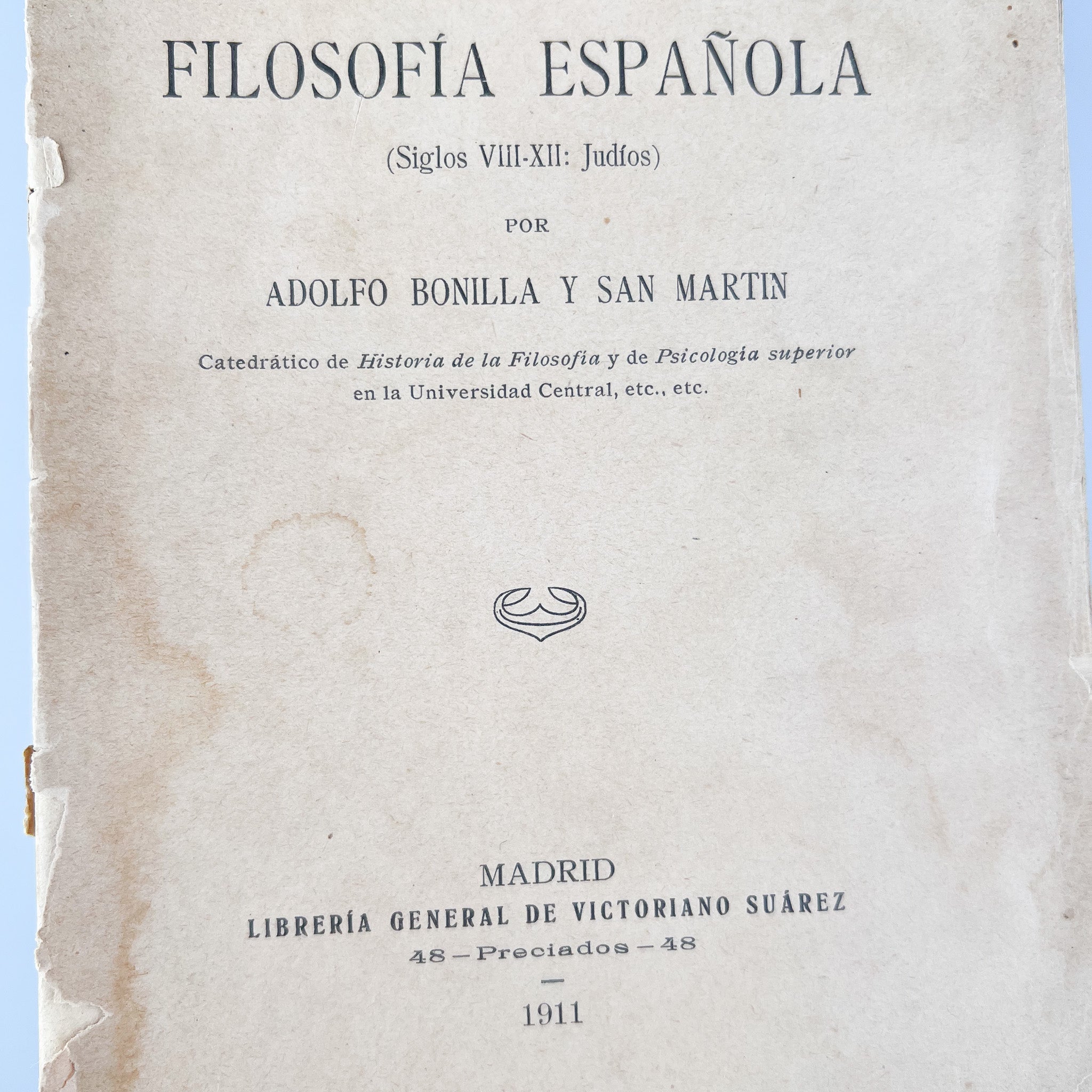 Historia de la Filosofía Española (Siglos VIII-XII: Judíos), Adolfo Bonilla y San Martín