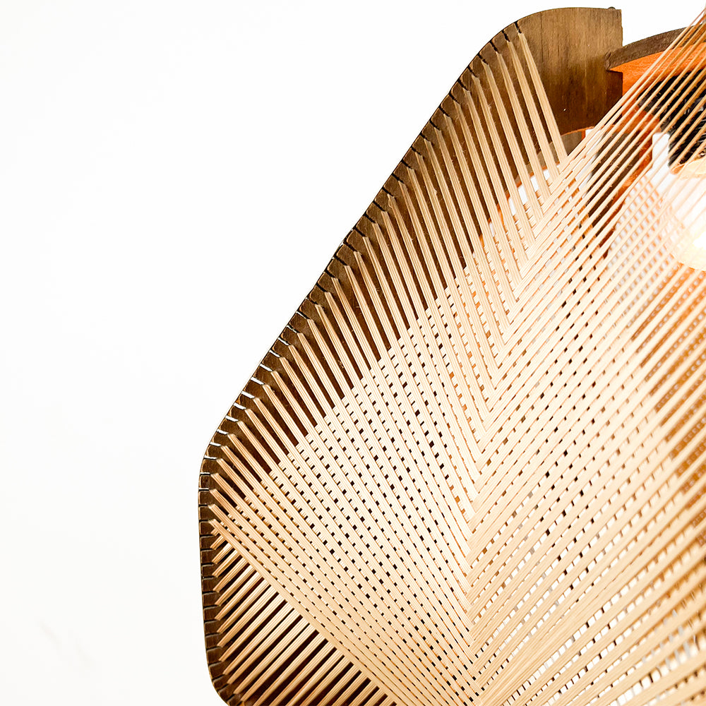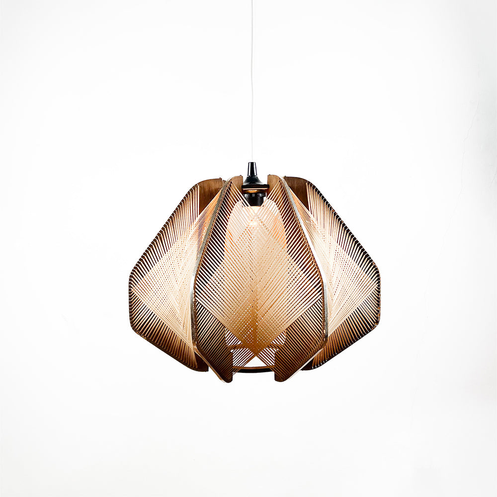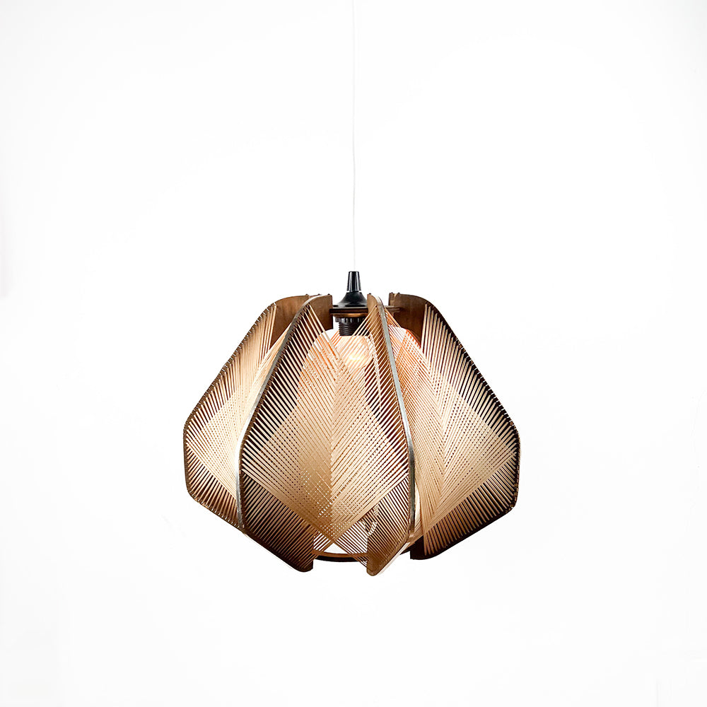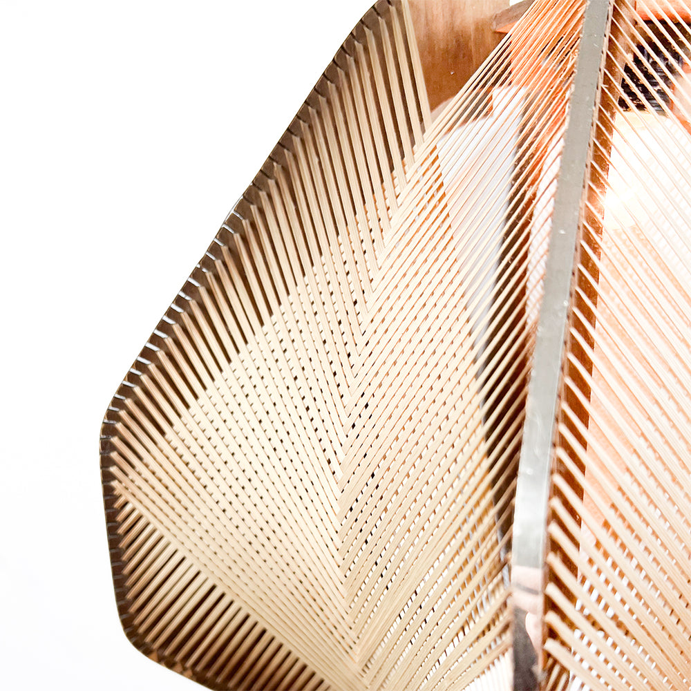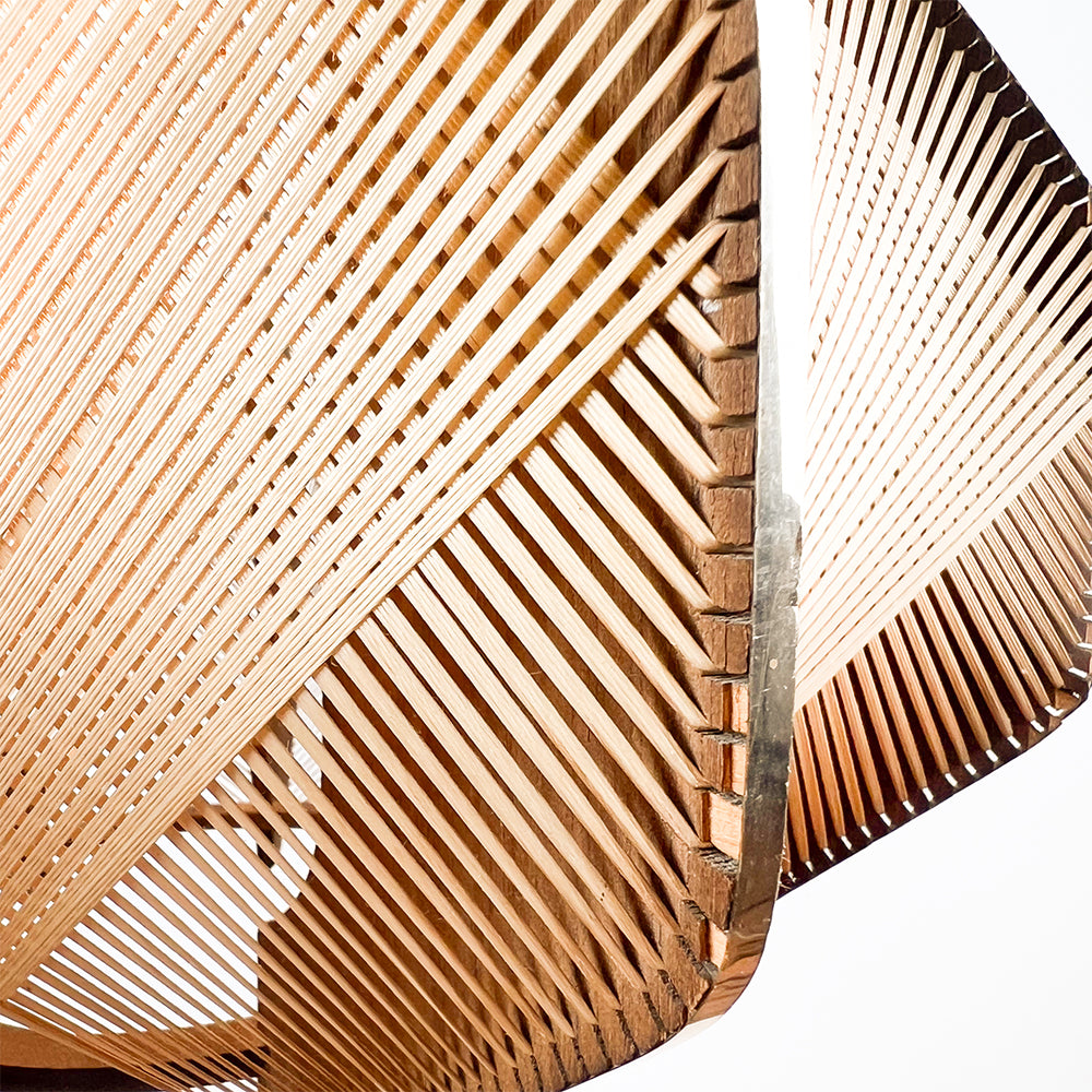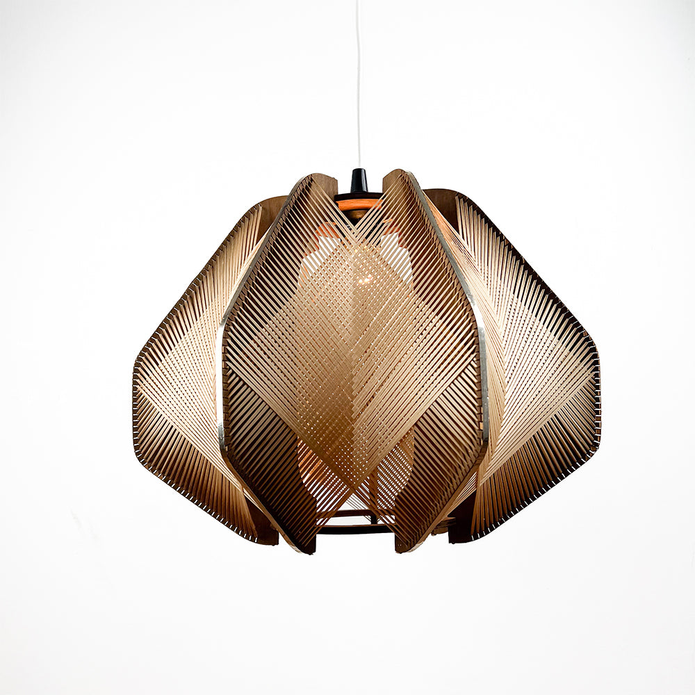 Wooden and raffia lamp, 1970s Unvarnished wood with metallic edges. Dimensions: 40 cm diameter, 34 cm height