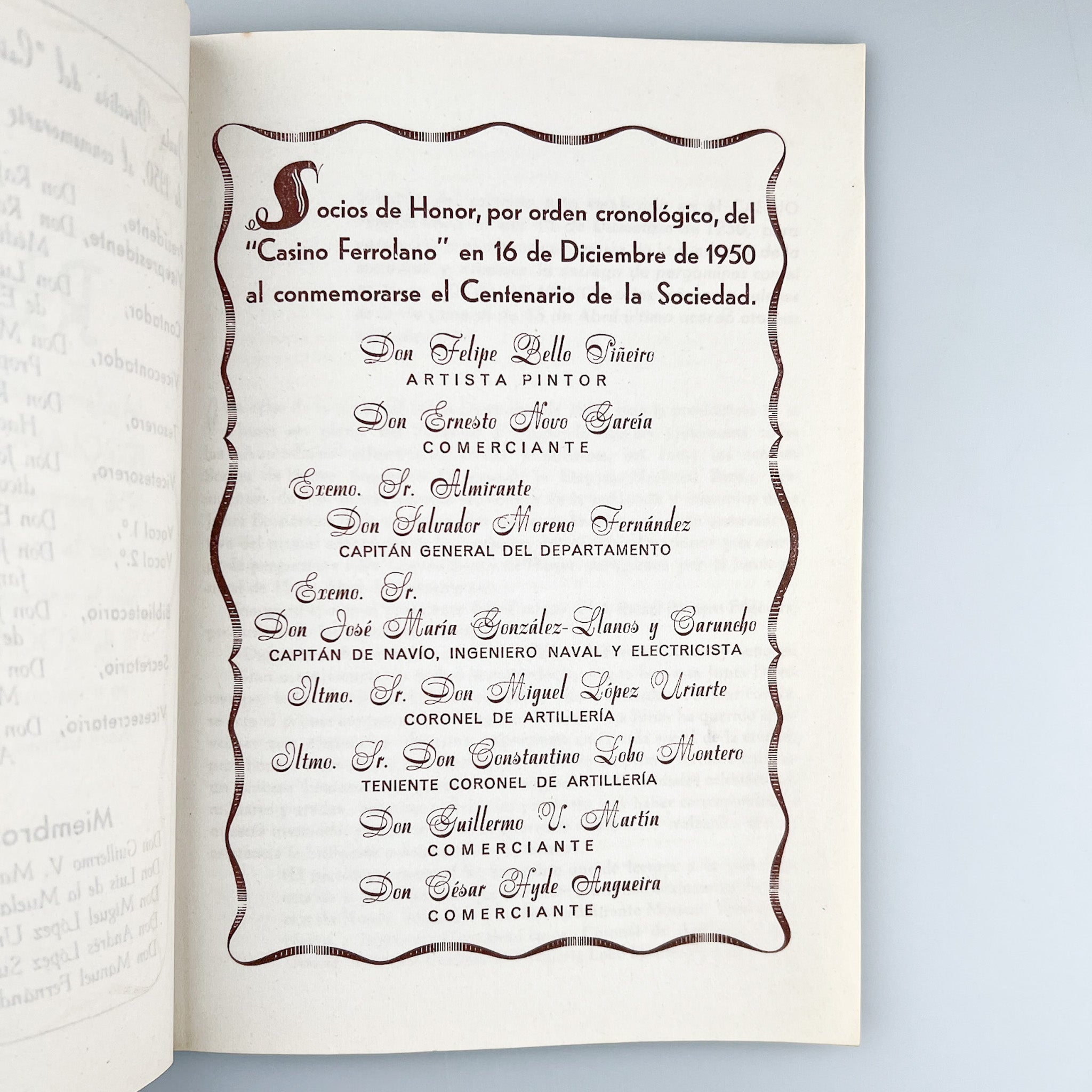 Reseña del centenario del Casino Ferrolano, 1950