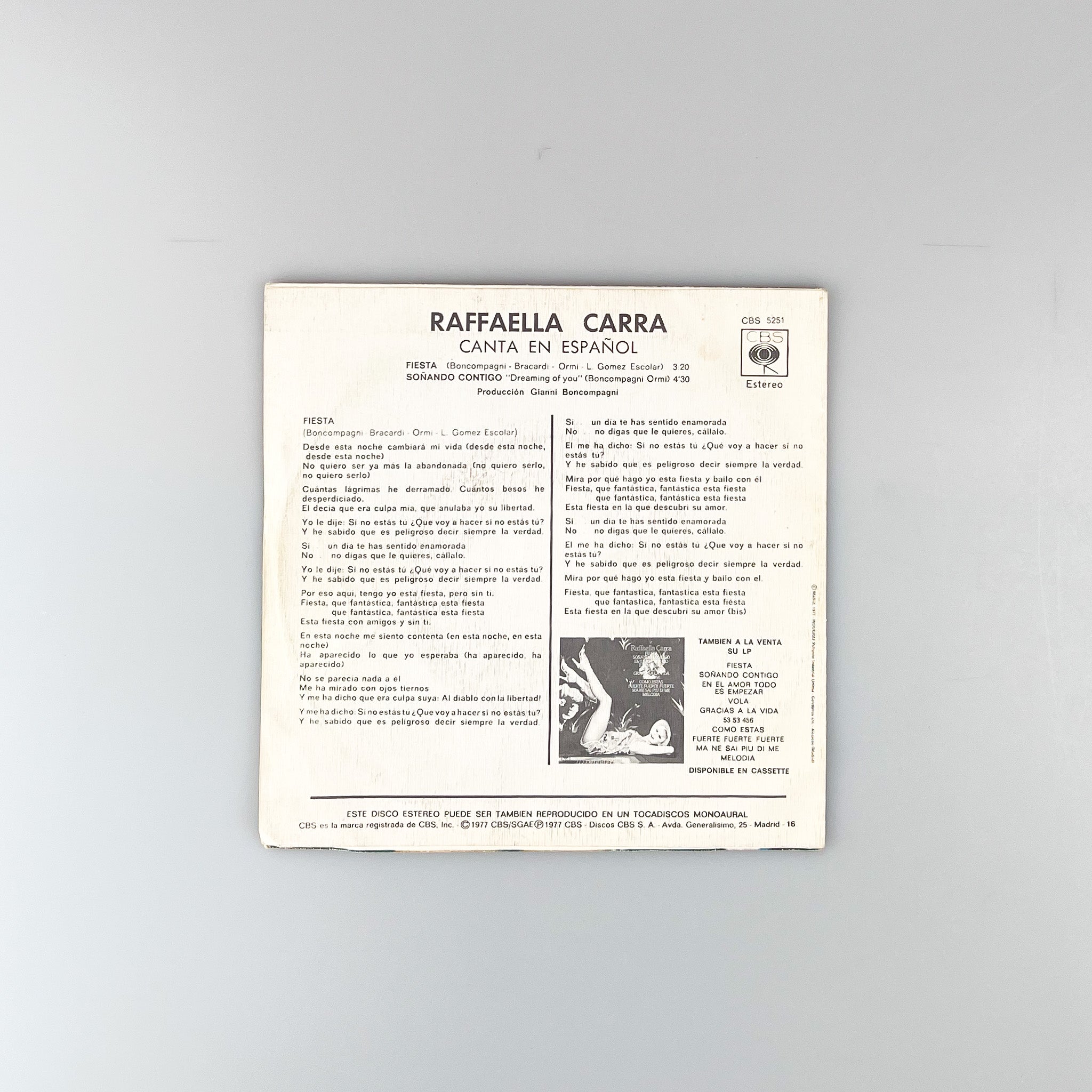 SINGLE. Raffaella Carra. (Canta En Español) Fiesta
