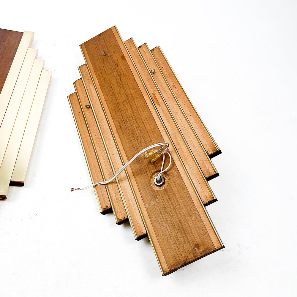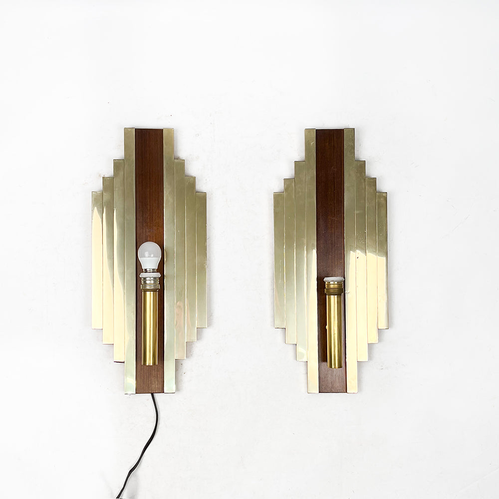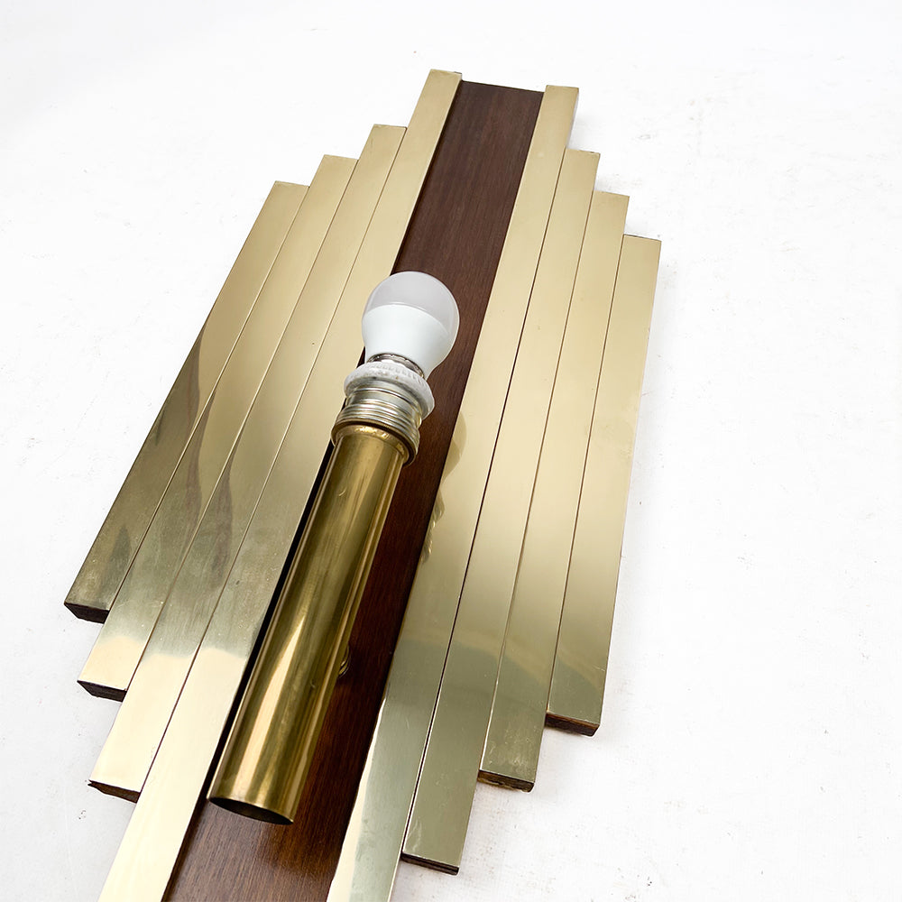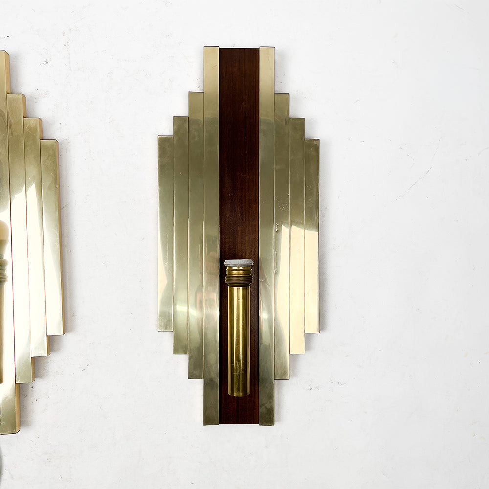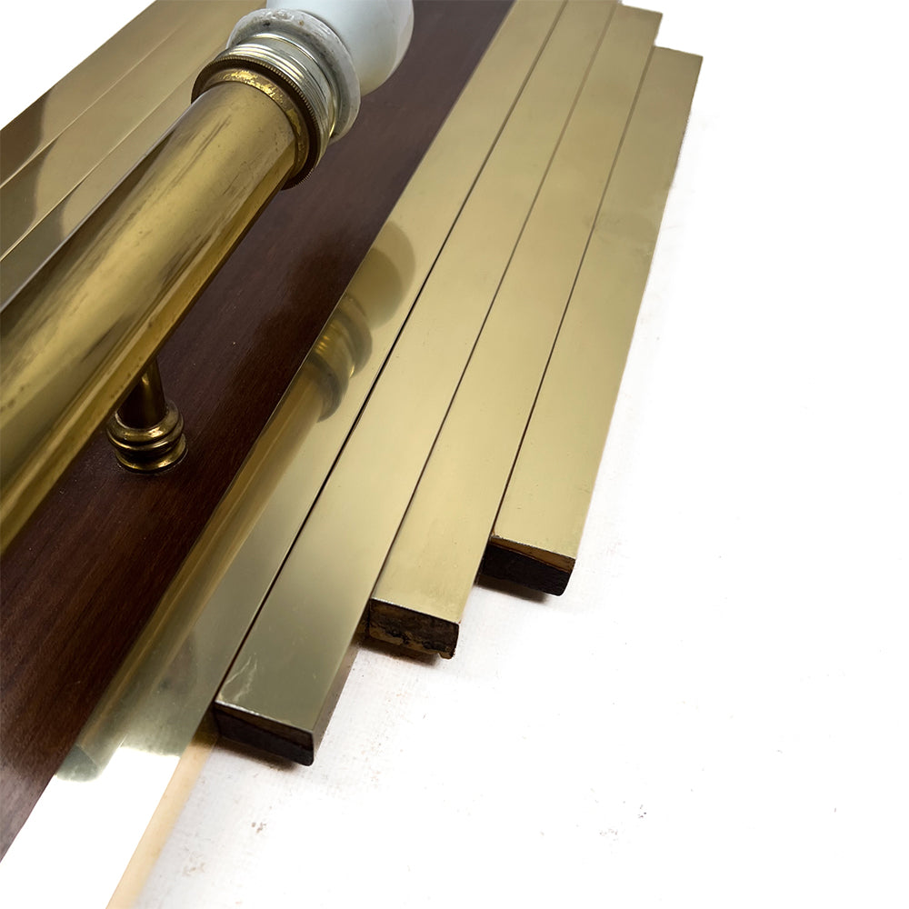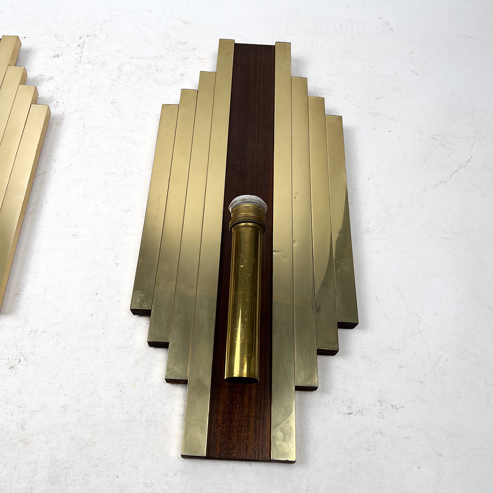 真鍮と木製の大型ウォールスコンセ、ペア、1950年代