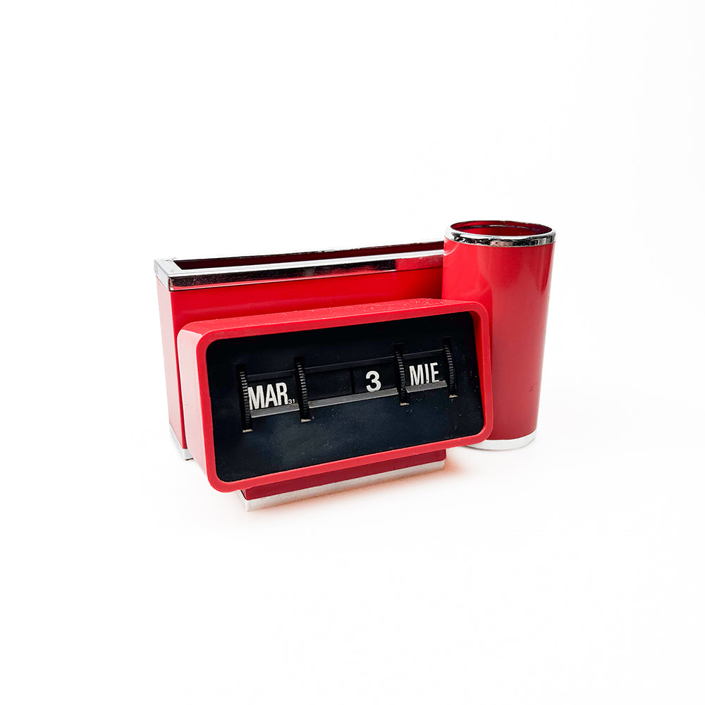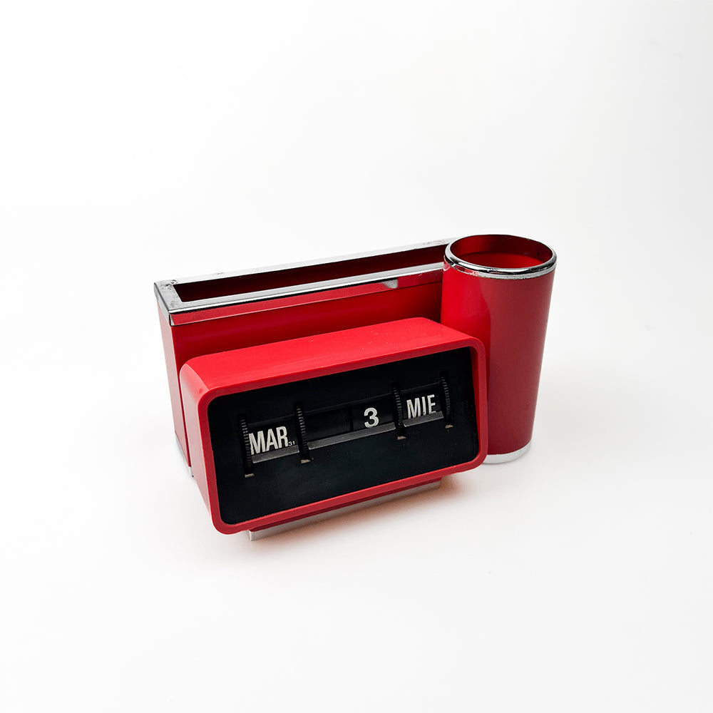 플라스틱과 금속으로 만든 달력 및 탁상용 정리함.